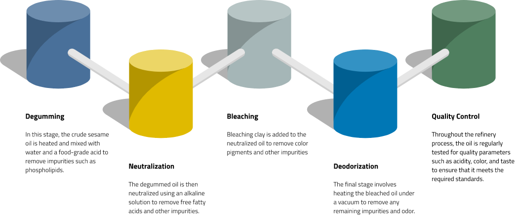 芝麻油精炼工艺包含多个需严格监控的阶段,以确保最终产品符合质量标准。以下是该工艺的关键要点:
